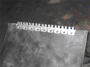На конвейере необходимо натянуть ленту и вставить соединительный трос. Данная операция бывает проблематичной из-за перекоса троса. В этом случае мы вставляем пруток диаметром 6 мм и постепенно вслед за ним вставляем соединительный трос. Для дополнительного удобства, на начало соединительного троса можно установить небольшой отрезок термоусадочной трубки, что дополнительно облегчит установку троса. Обычно установка троса особых проблем не вызывает.