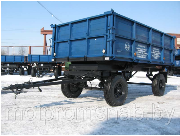 Назначение: прицеп тракторный самосвальный 2 ПТС-4,5 предназначен дляперевозки различных сельскохозяйственных и сыпучих строительных грузов по дорогам общей сети и в полевых условиях. Разгрузка прицепа трёхсторонняя. Прицеп агрегатируется с колёсными тракторами тягового класса 1,4т оборудованными раздельно-агрегатной гидросистемой, имеющими тягово-сцепное устройство по ГОСТ 2349, а также выводы для подключения тормозной пневмосистемы и электрооборудования.