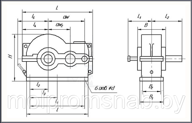 ГАБАРИТНЫЕ РАЗМЕРЫ РЕДУКТОРА типа РЦД