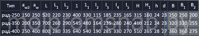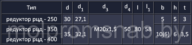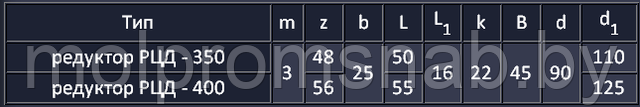ТЕХНИЧЕСКИЕ ХАРАКТЕРИСТИКИ РЕДУКТОРОВ типа РЦД